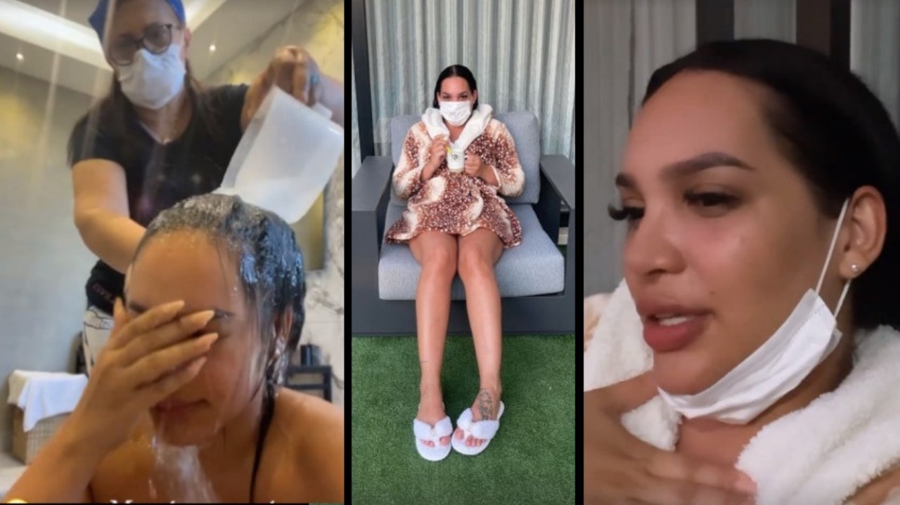 La barranquillera Andrea Valdiri dijo que no tenía covid pero podría tener ‘El abrazo de Macta’. La influencer publicó varias historias de Instagram en la que mostraba como su mamá le ‘tiraba’ agua mientras ella estaba dentro de una bañera.