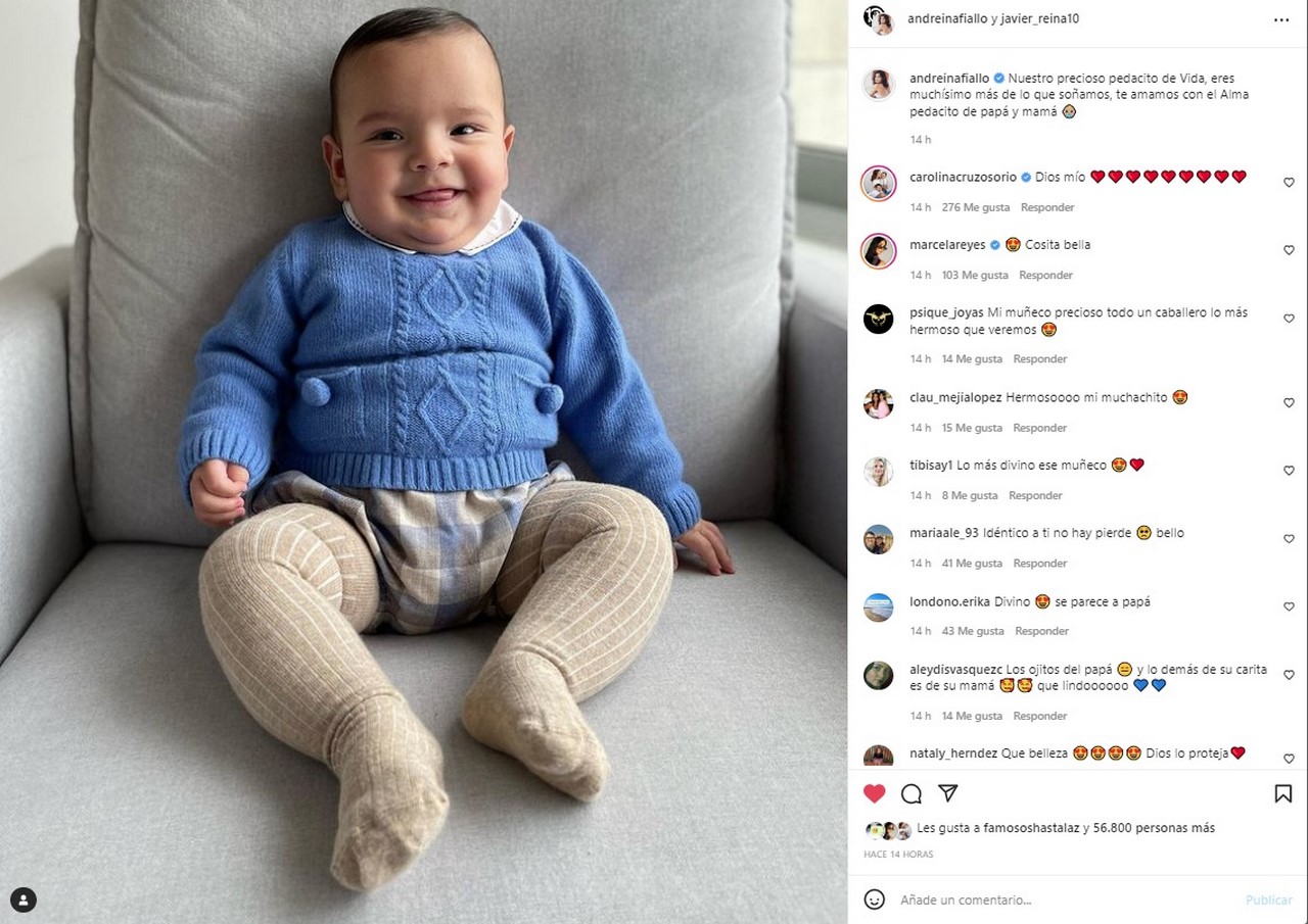 Con una imagen en la que sale sentado en un sofá, sonriendo y con ropa abrigada, Andreina Fiallo mostró a su tercer hijo. “Nuestro precioso pedacito de Vida, eres muchísimo más de lo que soñamos, te amamos con el Alma pedacito de papá y mamá”, escribieron en la publicación.