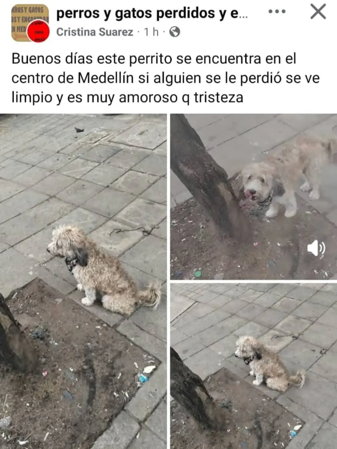 Según publicaciones de páginas de mascotas, lo han visto deambulando por el centro de Medellín, muy triste.