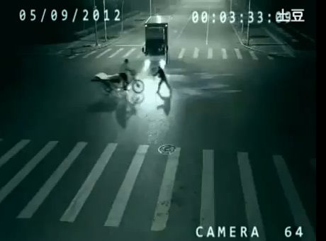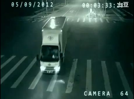 Las cámaras de seguridad de un cruce en China captaron un momento fuera de lo común, mientras un hombre intenta cruzar en un triciclo motorizado un camión se aproxima a gran velocidad, por lo que el atropellamiento es inevitable.