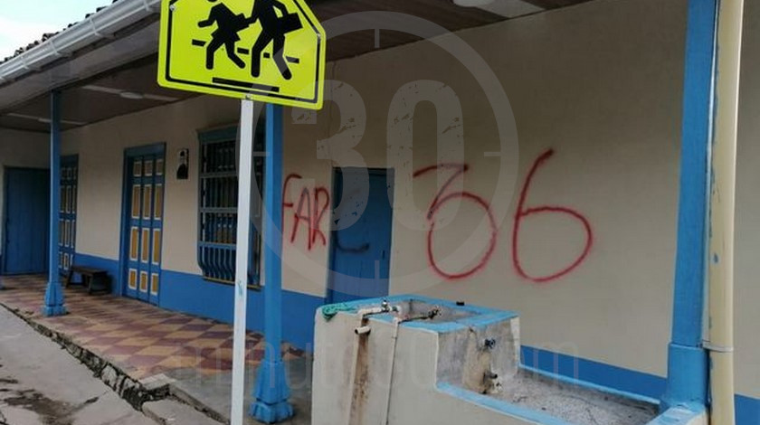La comunidad del sector conocido como La Quinta del municipio de Angostura, Antioquia, denunció que en las últimas horas aparecieron grafitis de las disidencias de las Farc.