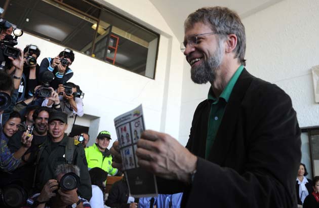 Mockus, ex alcalde de Bogotá y favorito en las encuestas junto con el candidato oficialista, Juan Manuel Santos (Partido de la U), votó alrededor de las 08.45 hora local (13.45 GMT) en la Hemeroteca Nacional de la capital, acompañado por su esposa, dos de sus hijas y los también ex alcaldes Lucho Garzón y Enrique Peñalosa, dos de sus colaboradores más cercanos.