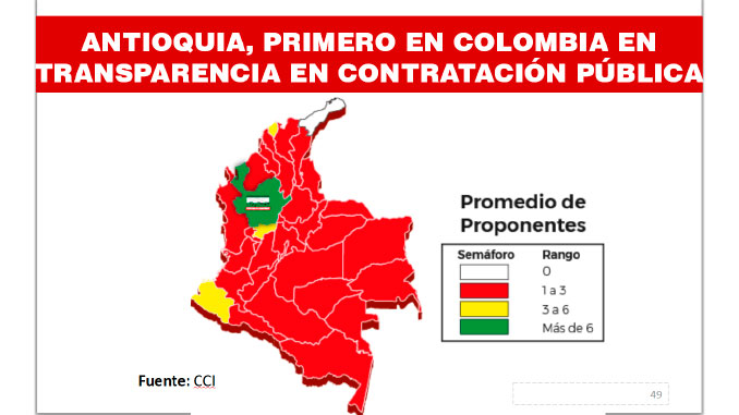 En rendición pública de cuentas, este lunes 25 de febrero, el gobernador Luis Pérez Gutiérrez, recordó que Antioquia ocupa el primer puesto en Colombia como el departamento con mayor transparencia en contratación pública.