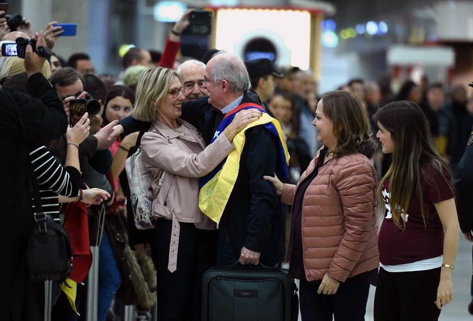 “En España me siento libre” fueron las primeras palabras que pronunció el ex alcalde metropolitano de Caracas nada más pisar suelo español y después de abrazar cariñosamente a su esposa Mitzy Capriles y a sus dos hijas, que le esperaban en el aeropuerto madrileño junto a decenas de venezolanos y simpatizantes de la causa que defiende Ledezma y la oposición al régimen de Nicolás Maduro.