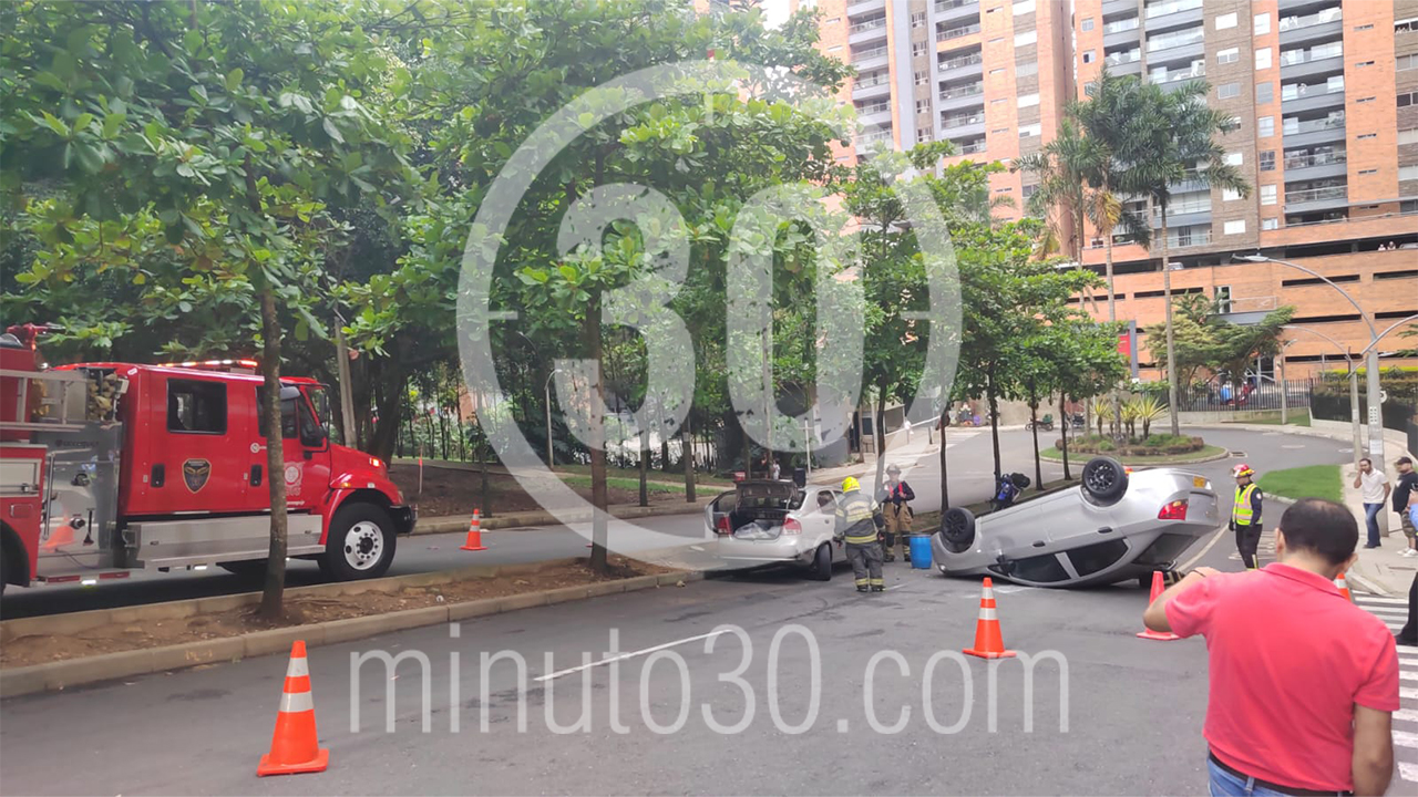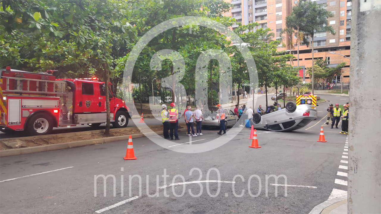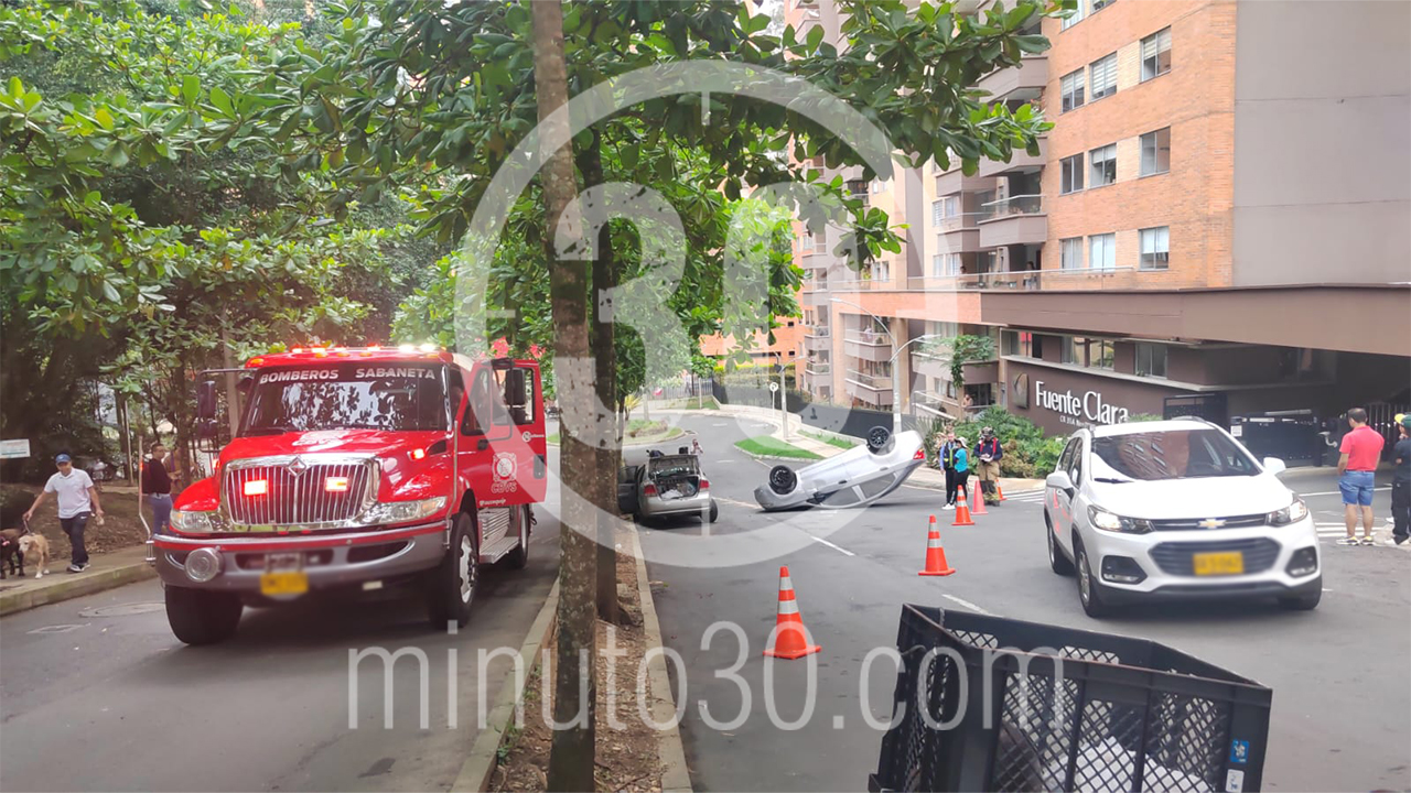 Un aparatoso accidente se presentó en la mañana de este sábado, 28 de septiembre, en Sabaneta, luego de que un vehículo terminara volcado, tras chocar contra otro carro al que le dañó el eje.