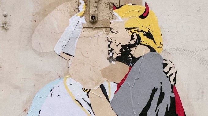 Aparece en el centro de Roma un dibujo del papa y Trump besándose