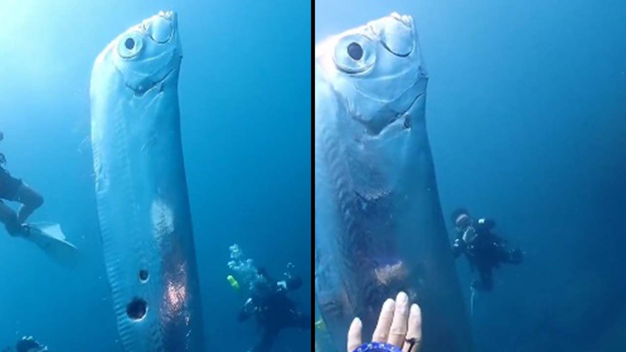 En redes sociales circula un video donde se observa un ‘pez remo’ gigante. Los buzos de Taiwán (China) quedaron atónitos después de encontrar el gigantesco pez con agujeros misteriosos en su cuerpo.