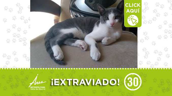 Este gatico se perdió en el barrio La Paz de Envigado. Si usted lo ha visto por favor llamar al 3117453714. ¡Difunde!