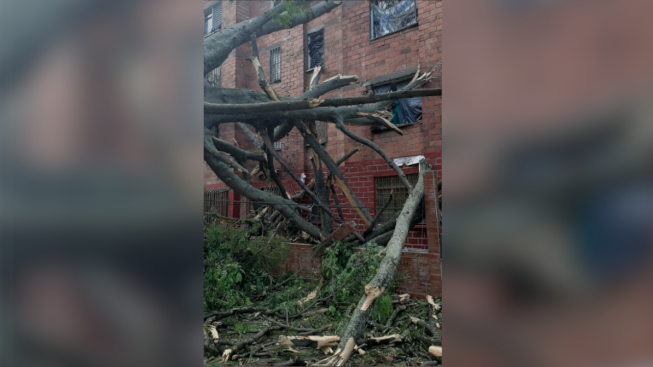 Este fue el caso de un bloque de apartamentos, donde un árbol cayó por los fuertes aguaceros, atravesando con sus ramas las ventanas.
