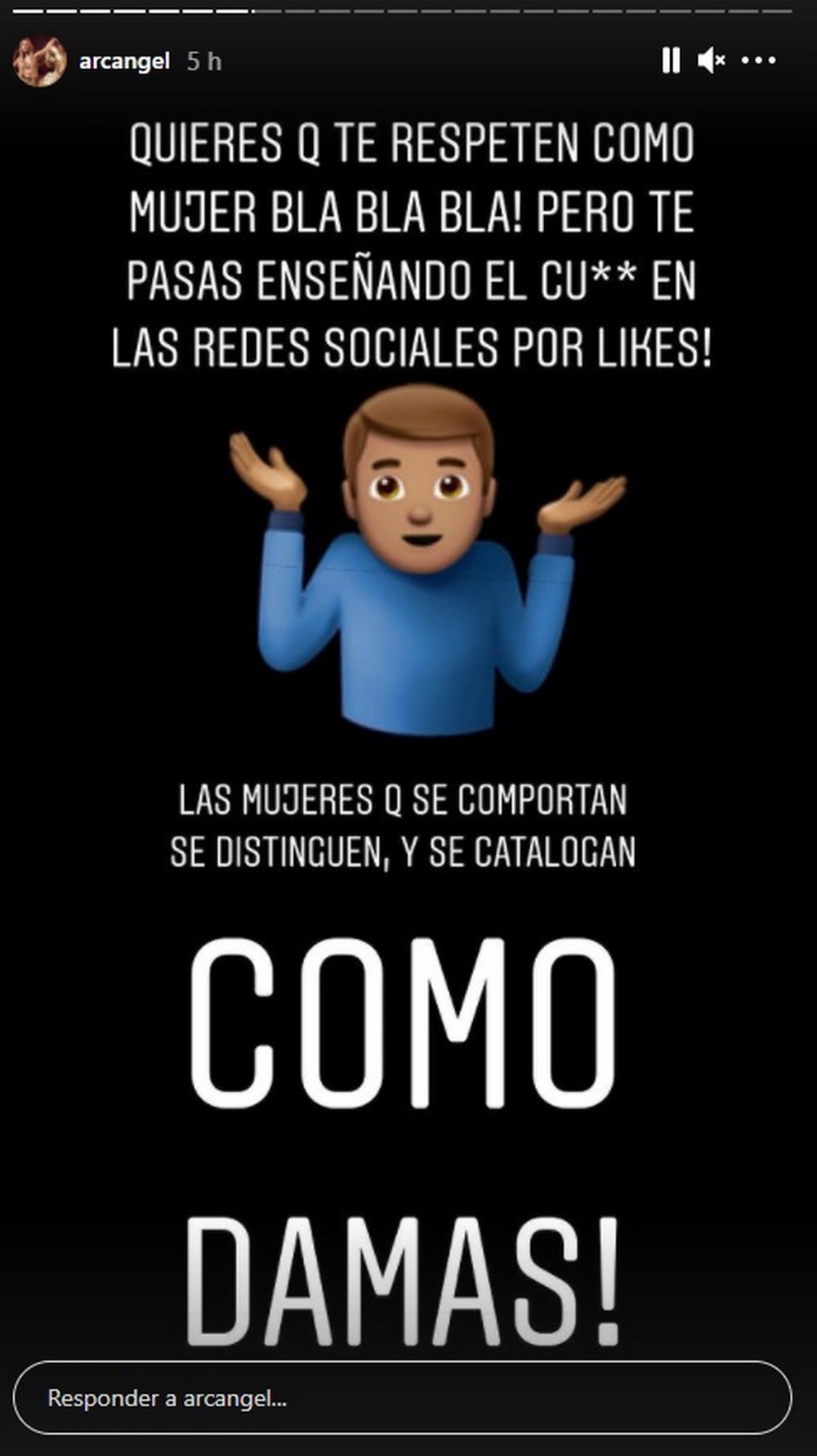 “Quieres que te respeten como mujer BLA BLA BLA. Pero te pasas enseñando el culo en las redes sociales por likes”, fueron las palabras que escribió el cantante.