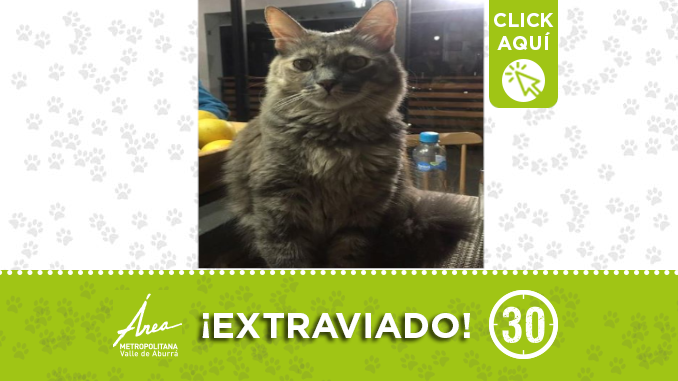 ‘Aria’ es una gatita que se perdió en Itagüí, en el sector de San Gabriel. Si usted la ha visto, puede comunicarse al teléfono 3148112376 o al 3006142833. ¡Comparte!
