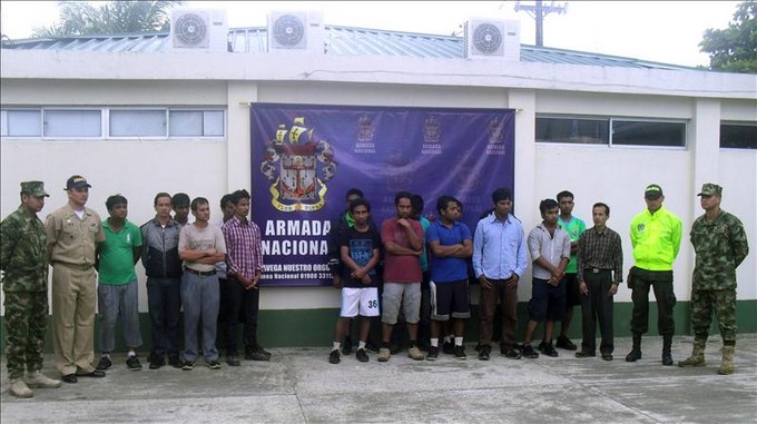 La Armada colombiana detuvo hoy en un control fluvial a diecisiete inmigrantes procedentes de Bangladesh que viajaban de manera ilegal hacia Centroamérica en una embarcación artesanal por el noroeste del país, informó esta institución.