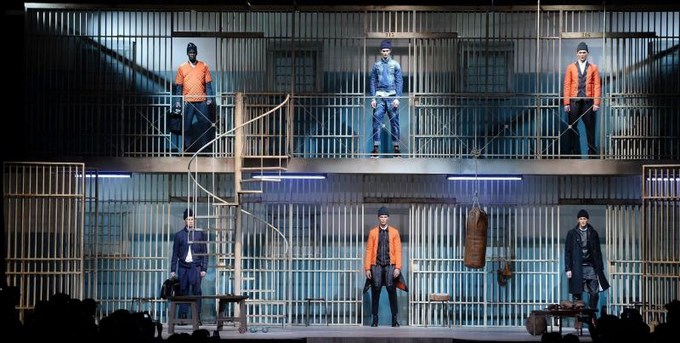 La puesta en escena consistió en el tránsito que un hombre experimenta desde que entra en prisión hasta que la abandona, camino de la libertad.