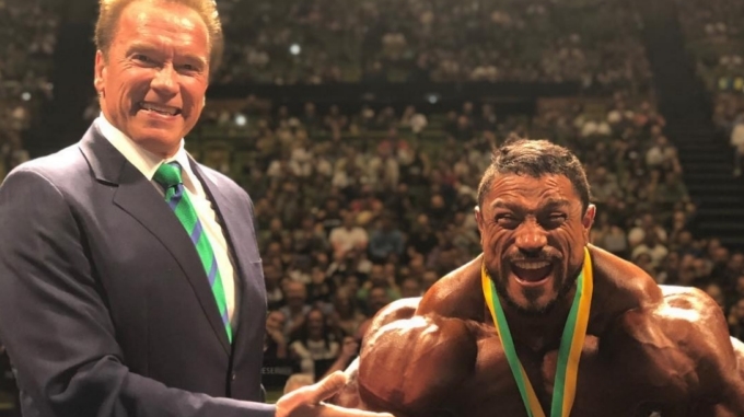 Arnold Schwarzenegger con el culturista profesional Roelly Winklaar en su victoria/Vía Instagram @schwarzenegger