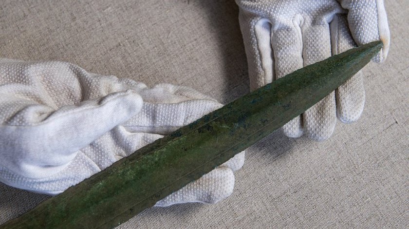 Los arqueólogos no han revelado el lugar exacto del descubrimiento para proteger el sitio, donde informaron que también se halló parte de una lanza de bronce de aproximadamente la misma época.