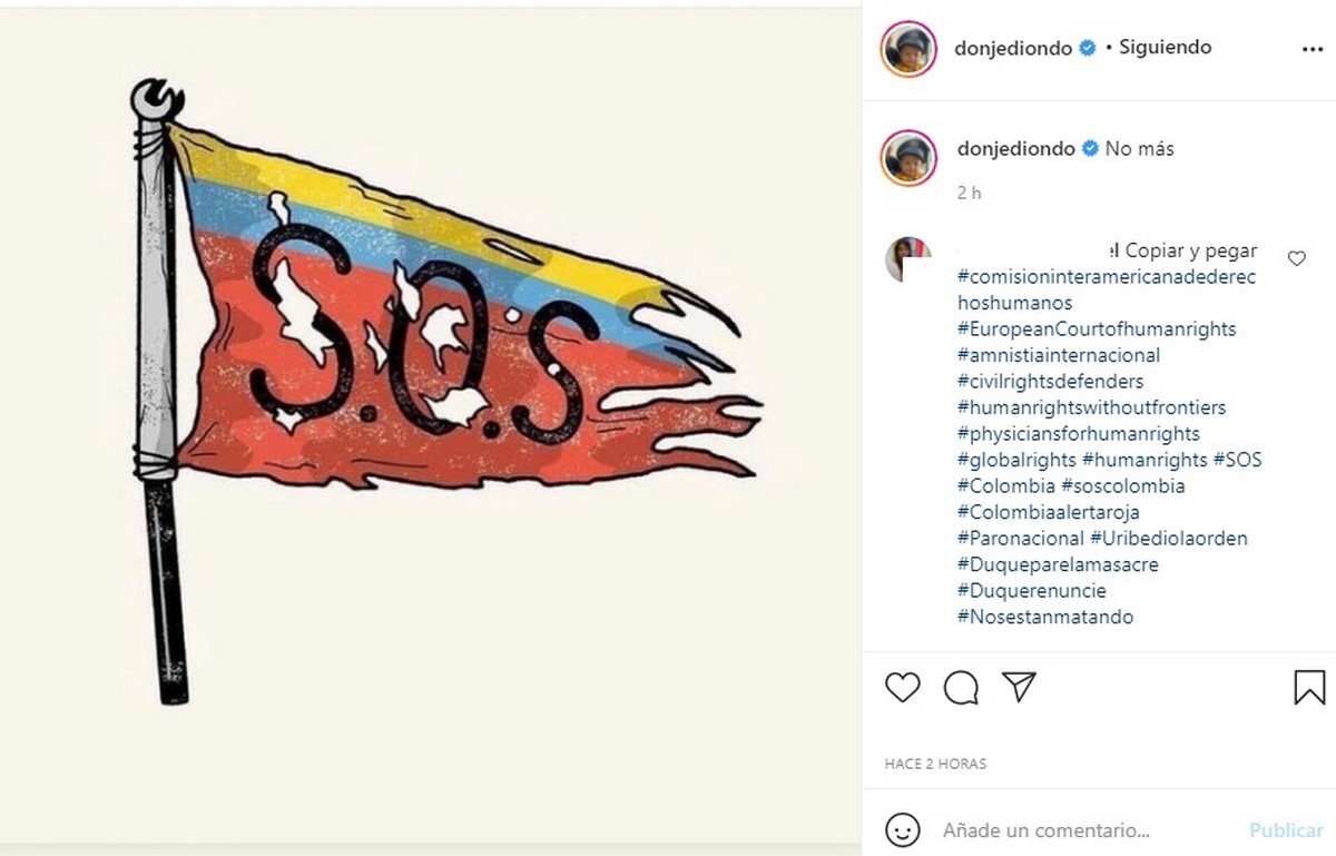 Muchos de los famosos colombianos han publicados video en sus estados de Instagram, que evidencian la muerte de algunos de los ciudadanos que salieron a manifestar en contra del Gobierno. Otros artistas internacionales se han unido al ‘grito de auxilio’.