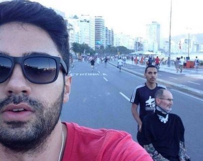 A través de la plataforma Reddit, el usuario TheHorseSizedDuck posteó una selfie en la que se observa en el fondo a un supuesto Steve Jobs con un collarín y en silla de ruedas paseando por playas brasileñas.