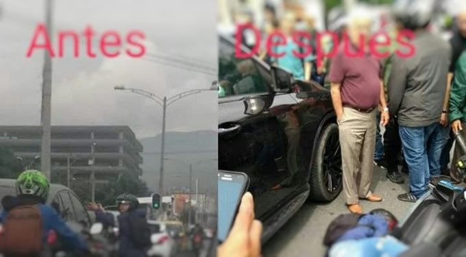 Una foto tomada al parecer minutos antes de un presunto fleteo muestra a dos jóvenes que perdieron la vida tras enfrentarse con el dueño de una camioneta en la avenida 33 de Medellín.