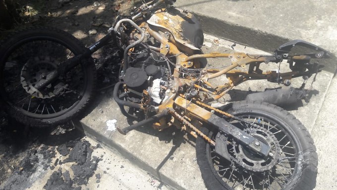 Un ciudadano denunció para Minuto30 que durante el pasado jueves 6 de septiembre un vecino que se encontraba, al parecer, bajo la influencia de alguna sustancia psicoactiva le prendió fuego a la moto de su propiedad.