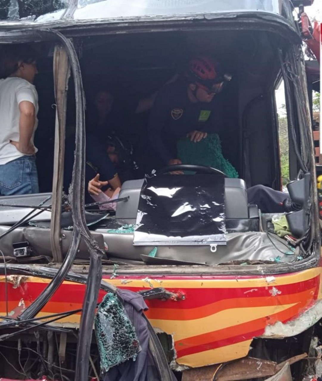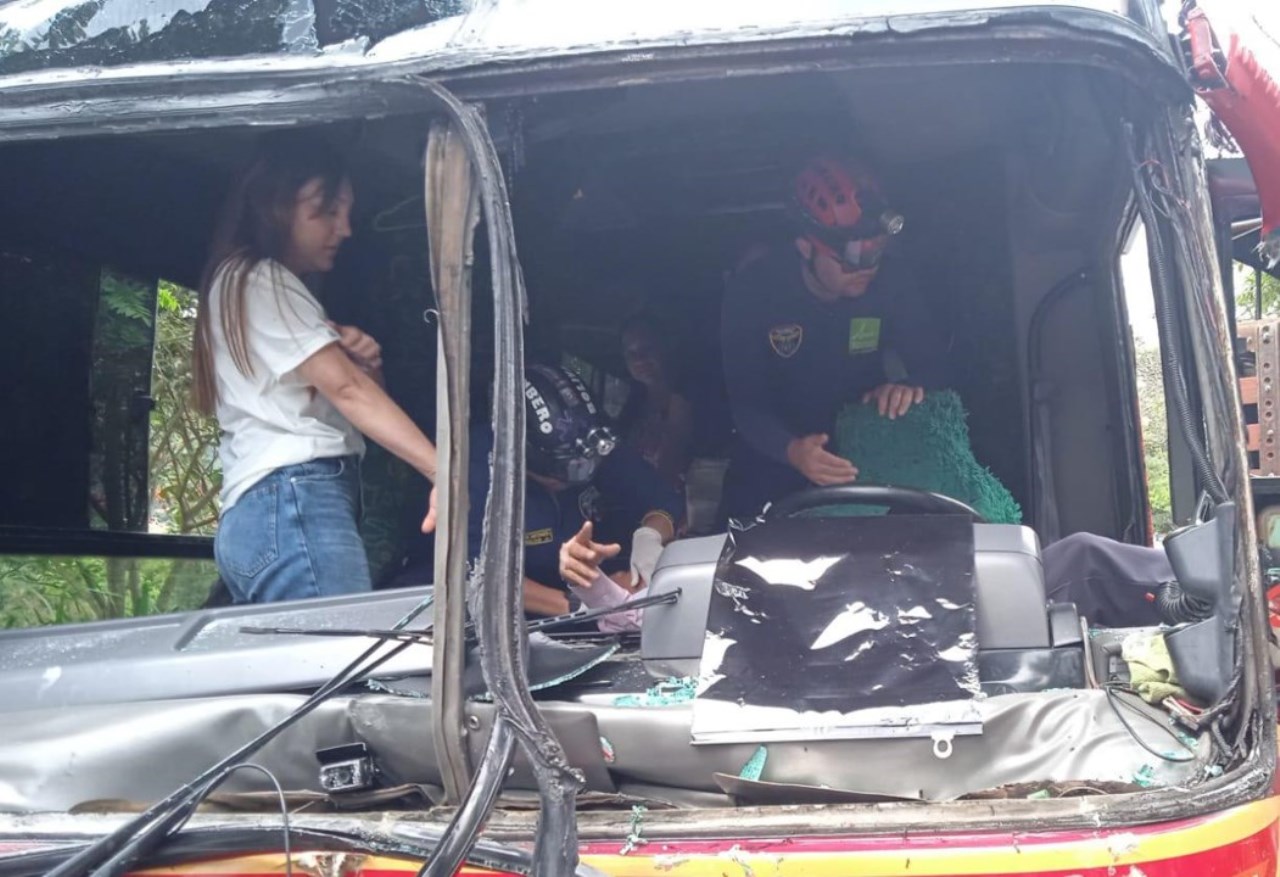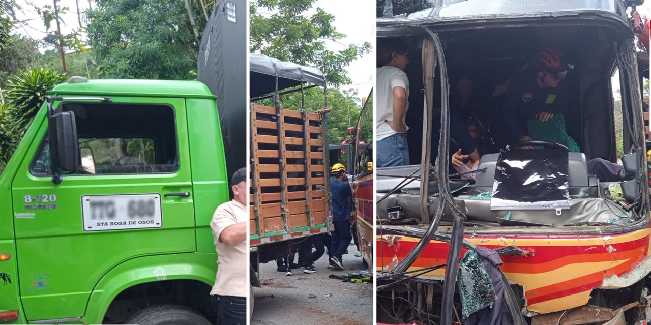 El accidente ocurrió cuando el conductor del camión, aparentemente, estaba realizando una maniobra de reversa, lo que provocó que el bus colisionara contra la parte trasera del vehículo de carga. En el momento de la colisión, el bus transportaba a 20 pasajeros, quienes, afortunadamente, resultaron ilesos. Sin embargo, el conductor del bus sufrió varios traumas y fue trasladado de inmediato al Hospital San Fernando de Amagá. Aunque su pronóstico médico es reservado, se descarta que su estado sea grave.
