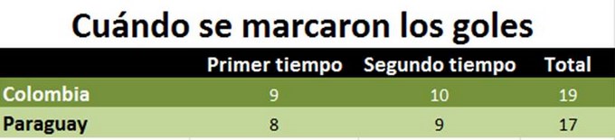 Así marcan los goles Colombia y Paraguay. Estadísticas