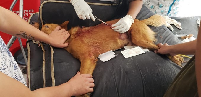 El canino fue encontrado cerca de la Estación de Policía de Pie de Patò, con manifestaciones de dolor y agotamiento, al parecer por su grave herida.