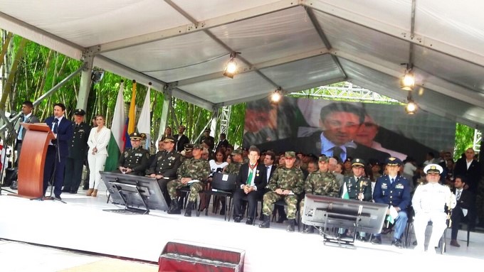 El Gobernador del departamento, Luis Pérez Gutiérrez, presidio el acto público en compañía de las autoridades civiles, militares, eclesiásticas y la comunidad en general, en el Parque de las Luces sector de La Alpujarra.