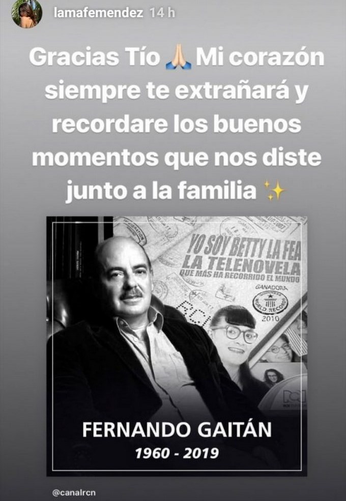 Así se despidió “La Mafe Méndez” de su tío Fernando Gaitán