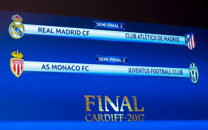 Real Madrid y Atlético de Madrid, que dirimieron las finales de 2014 y 2016, se enfrentarán en esta oportunidad en la semifinal en busca de una plaza en Cardiff el próximo 3 de junio, por la que pugnarán en el otro enfrentamiento Mónaco y Juventus.