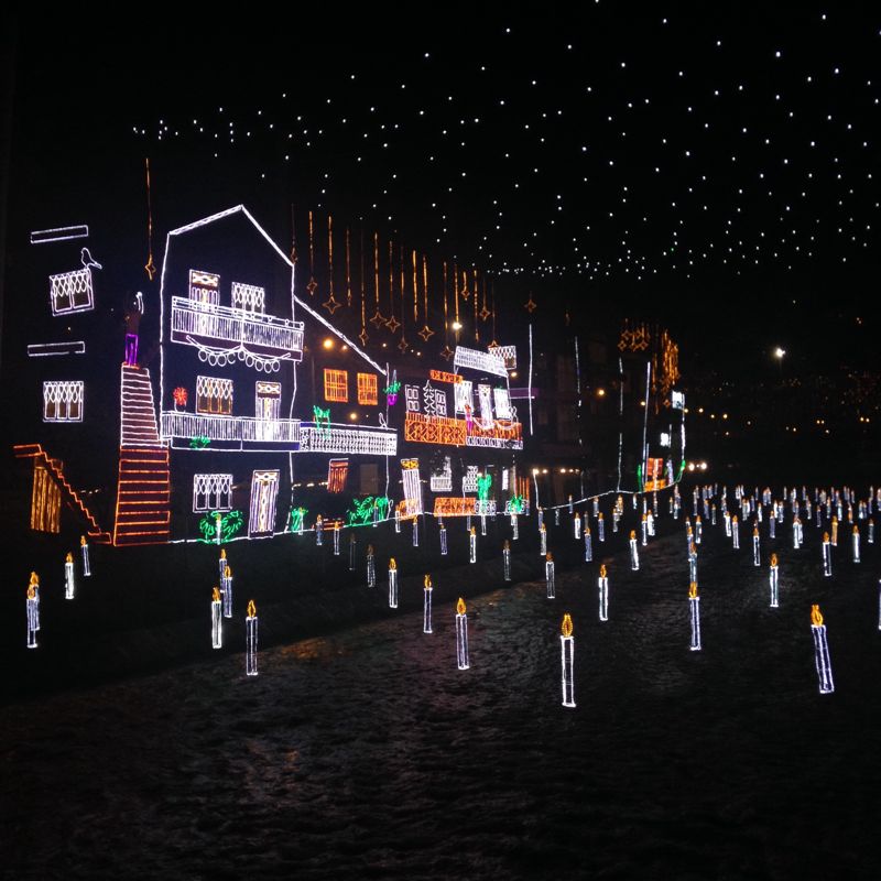 Para lograr el efecto, el río será una calle de luz, donde ambos costados se convertirán en las fachadas de las casas, con tamaños que oscilan entre 4 y 14 metros de altura, con la ambientación propia de la época. Sobre el río 3.000 velas, fabricadas en varillas de acero, papel metalizado y manguera luminosa con tecnología led, recordarán las fechas conmemorativas del último mes del año.
