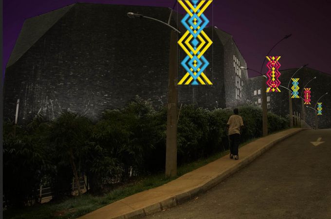 Esta vía que es vital en el ingreso y la salida del Valle de Aburrá tendrá figuras renovadas. En esta ocasión, 125 pendones de 1 metro de ancho por 3,3 metros de alto, distribuidos entre la glorieta de Sandiego y el Hotel Intercontinental, serán una versión estilizada de los tejidos artesanales de las abuelas, como las carpetas de croché y las colchas de retazos. Entre puntos, cadenetas, cruces y nudos tomarán forma las figuras.