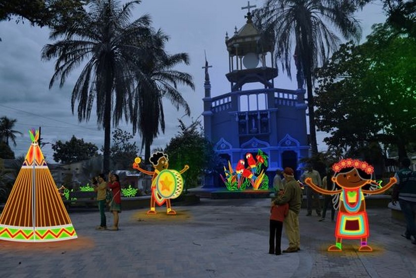 Nechí: la fachada de su Iglesia Principal y la entrada del Coliseo se engalanará con figuras de la naturaleza, entre ellas tigrillo, monos, mariposas, aves y flores.