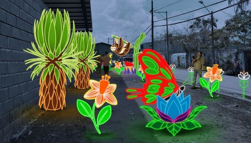 Caucasia: guirnaldas de coloridas bombillas, tipo techo de luz, decorará la calle 21, que además tendrá figuras de fauna y flora acuática. En el Parque Lineal y en el Palacio Municipal la iluminación destacará la riqueza natural de la localidad.