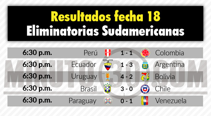 Entre tanto, Perú sumó 26 puntos y se quedó con la quinta posición por diferencia de gol, separando así el cupo para el repechaje, que tendrá que disputar en noviembre frente a Nueva Zelanda.