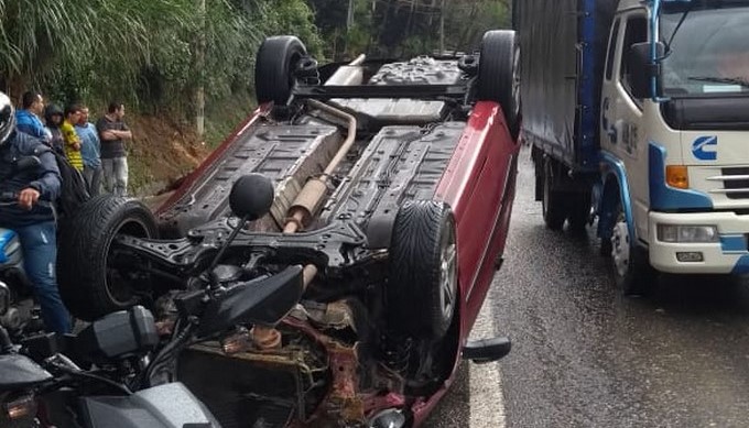 Durante el mediodía de este martes 31 de julio se registró un aparatoso volcamiento de vehículo en la variante de Caldas, sector conocido como Pan de Azúcar.
