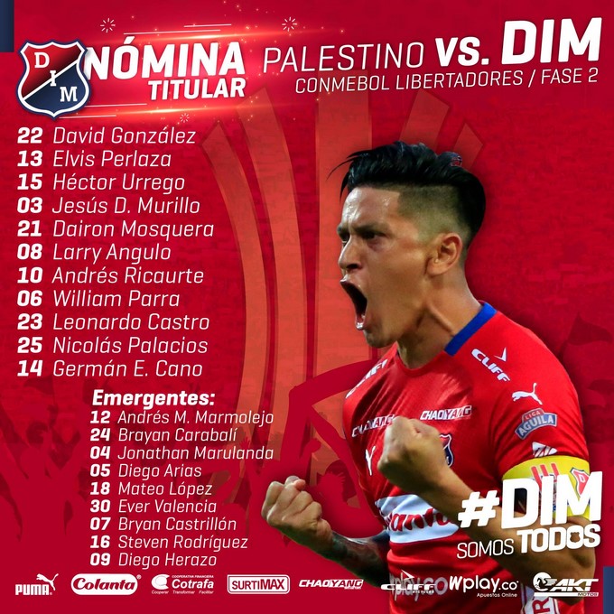 El Deportivo Independiente Medellín ya definió los once inicialistas para el debut en Copa Libertadores ante el Palestino de Chile.