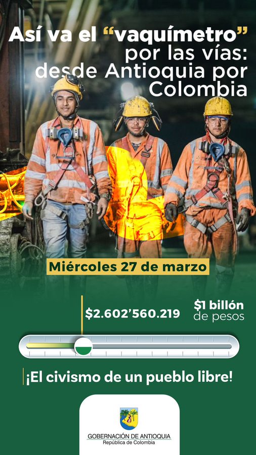 La mañana del miércoles 27 de marzo, el Gobernador Andrés Julián Rendón, actualizó el monto recaudado hasta ahora en la ‘Vaca’ por las vías de Antioquia.
