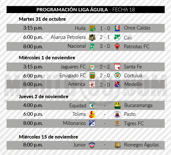 Minuto30.com- Seis partidos se han cumplido hasta ahora en la fecha 18 de la Liga Águila II-2017, que deja un sabor agridulce para Antioquia.