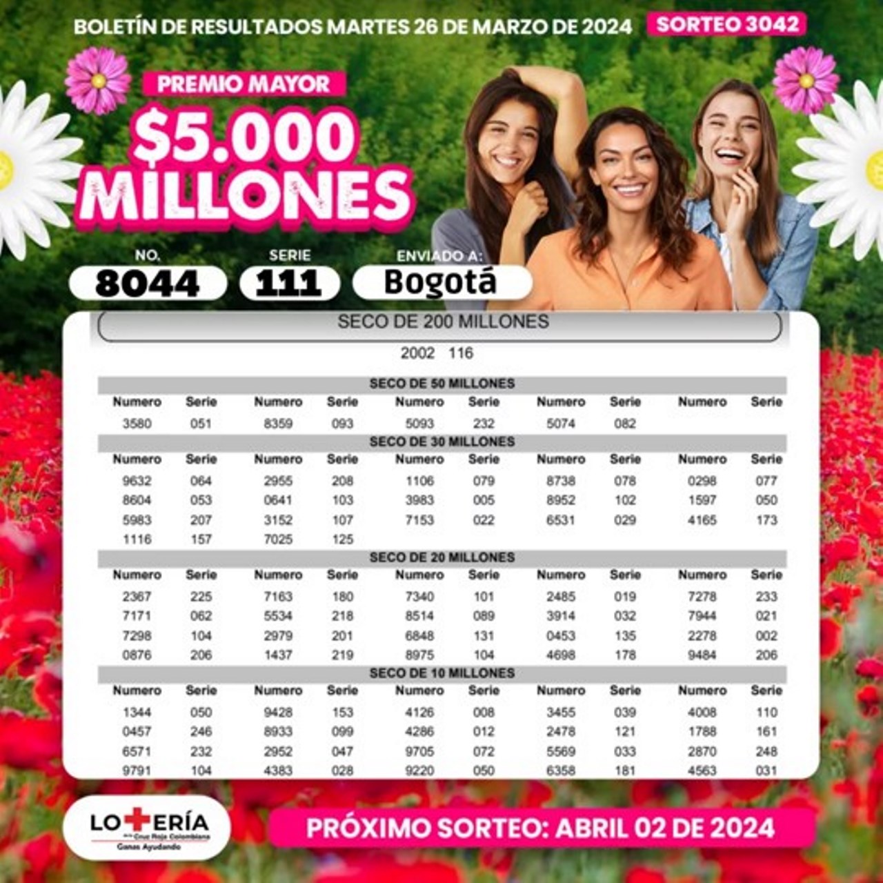 Resultados Lotería de la Cruz Roja del martes, 26 de marzo de 2024