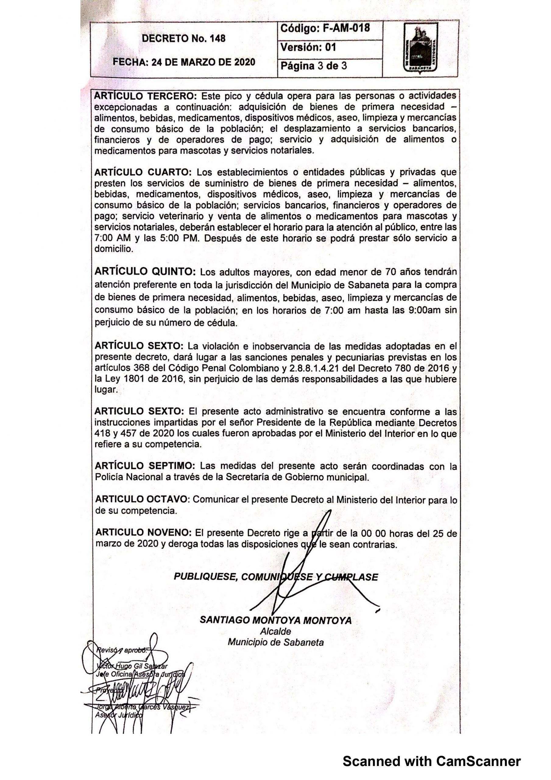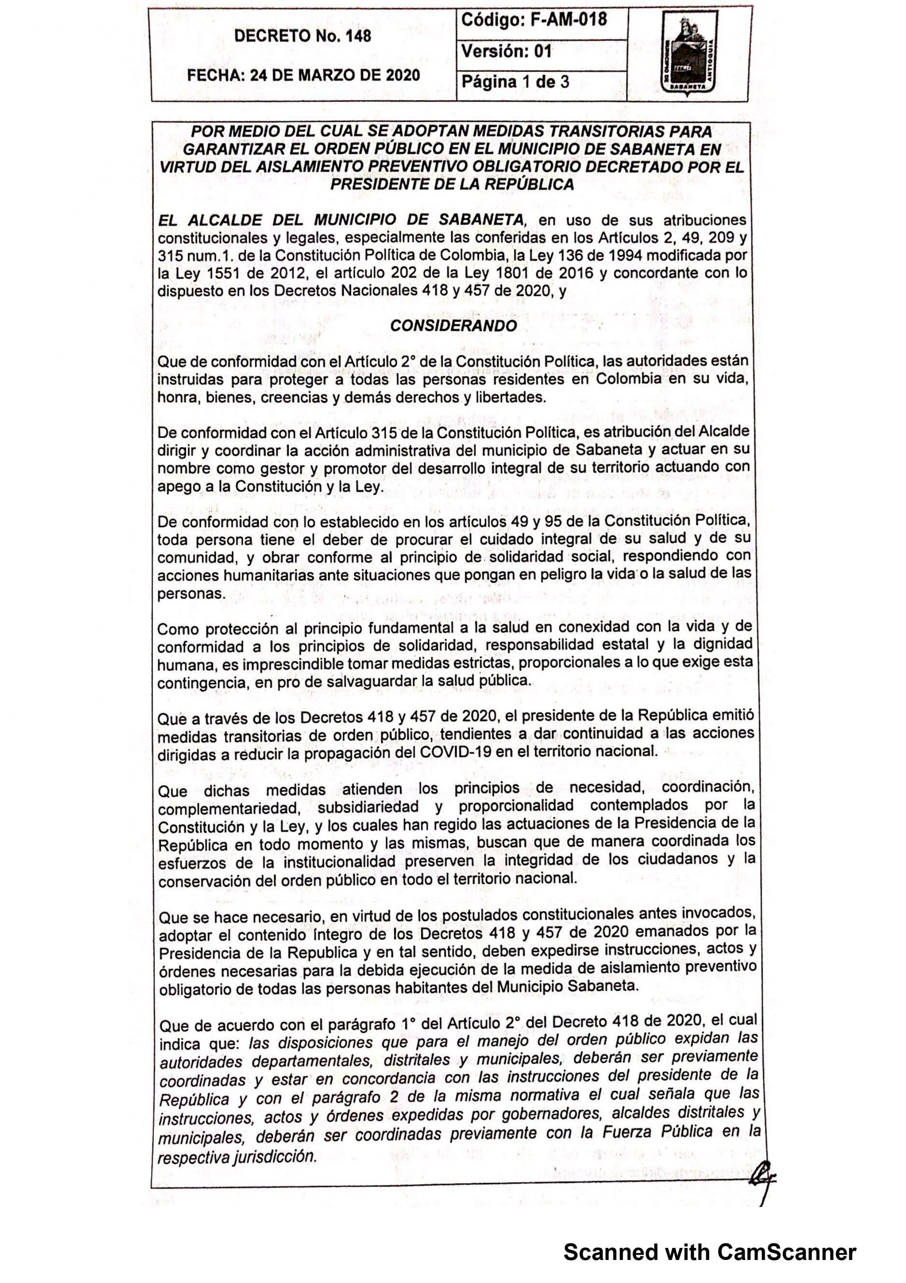 Como medida para mantener el orden público en este municipio del Valle de Aburrá, y proteger la salud pública, La Alcaldía de Sabaneta ha tomado medidas que regulan el tránsito de los habitantes. Esta regulación comienza a partir del 25 de Marzo, hasta el 13 de Abril y se da para prevenir el contagio con coronavirus.