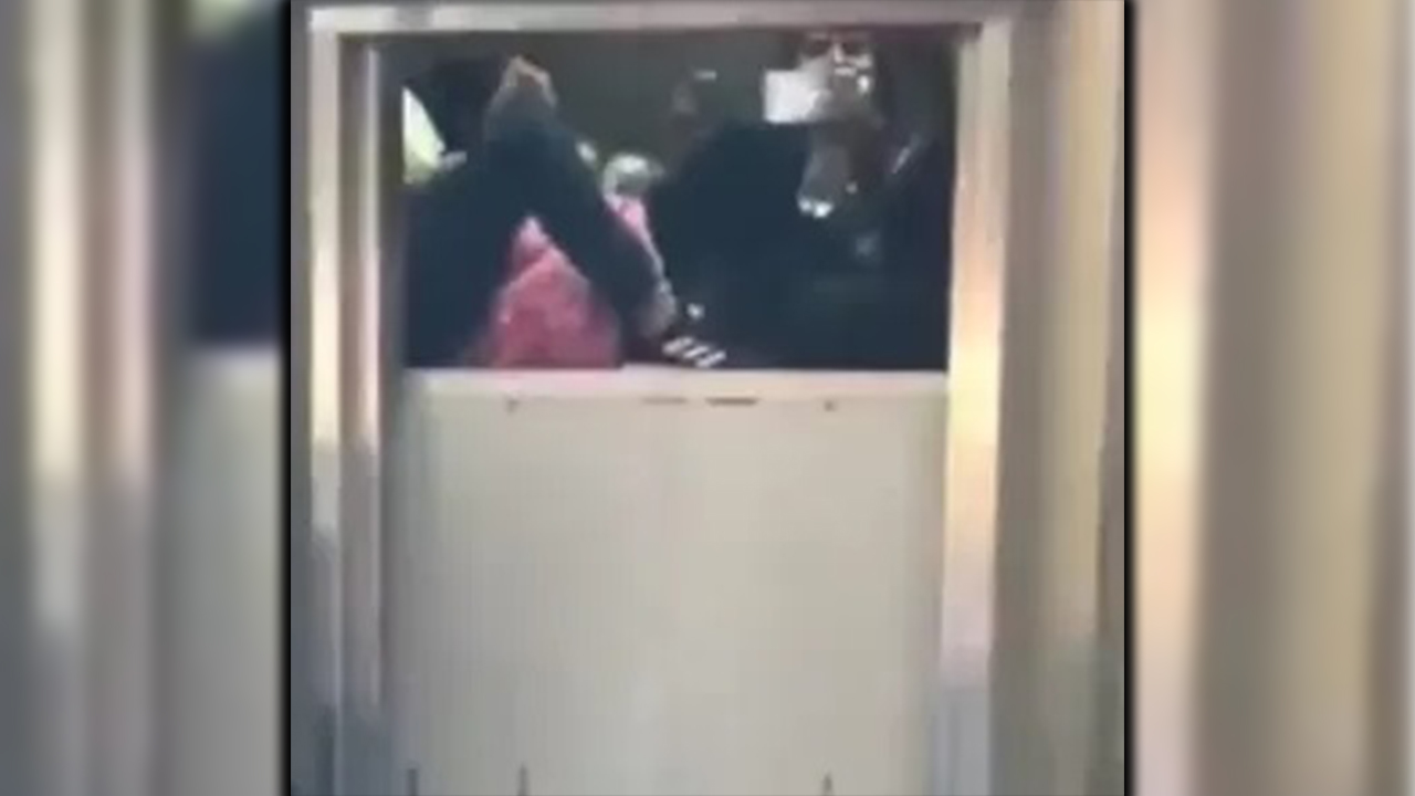 En el video difundido en redes se puede ver al personal de servicios generales que llega al lugar para intentar destrabar el equipo.