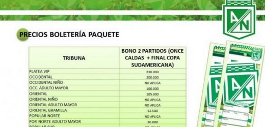 Minuto30.com-. Atlético Nacional puso en venta un paquete que incluye el partido por Liga Postobón frente a Once Caldas y el encuentro de ida de la Final de la Copa Total Sudamericana.
