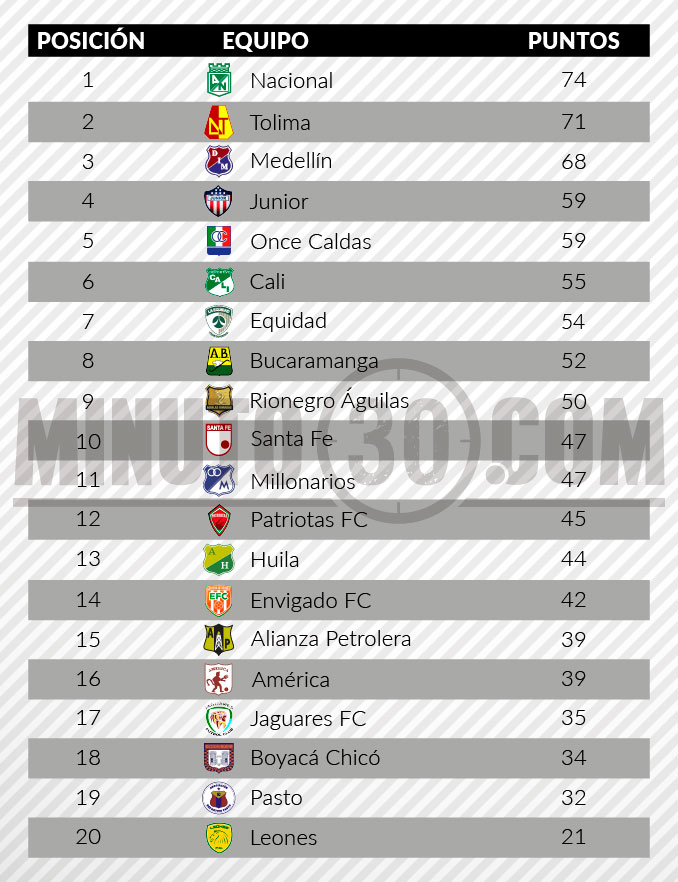 El conjunto ‘Verdolaga’ llegó a 74 puntos y asumió de nuevo el liderato de este escalafón, por delante de Deportes Tolima, que no está en competencia por los cupos a los torneos internacionales.