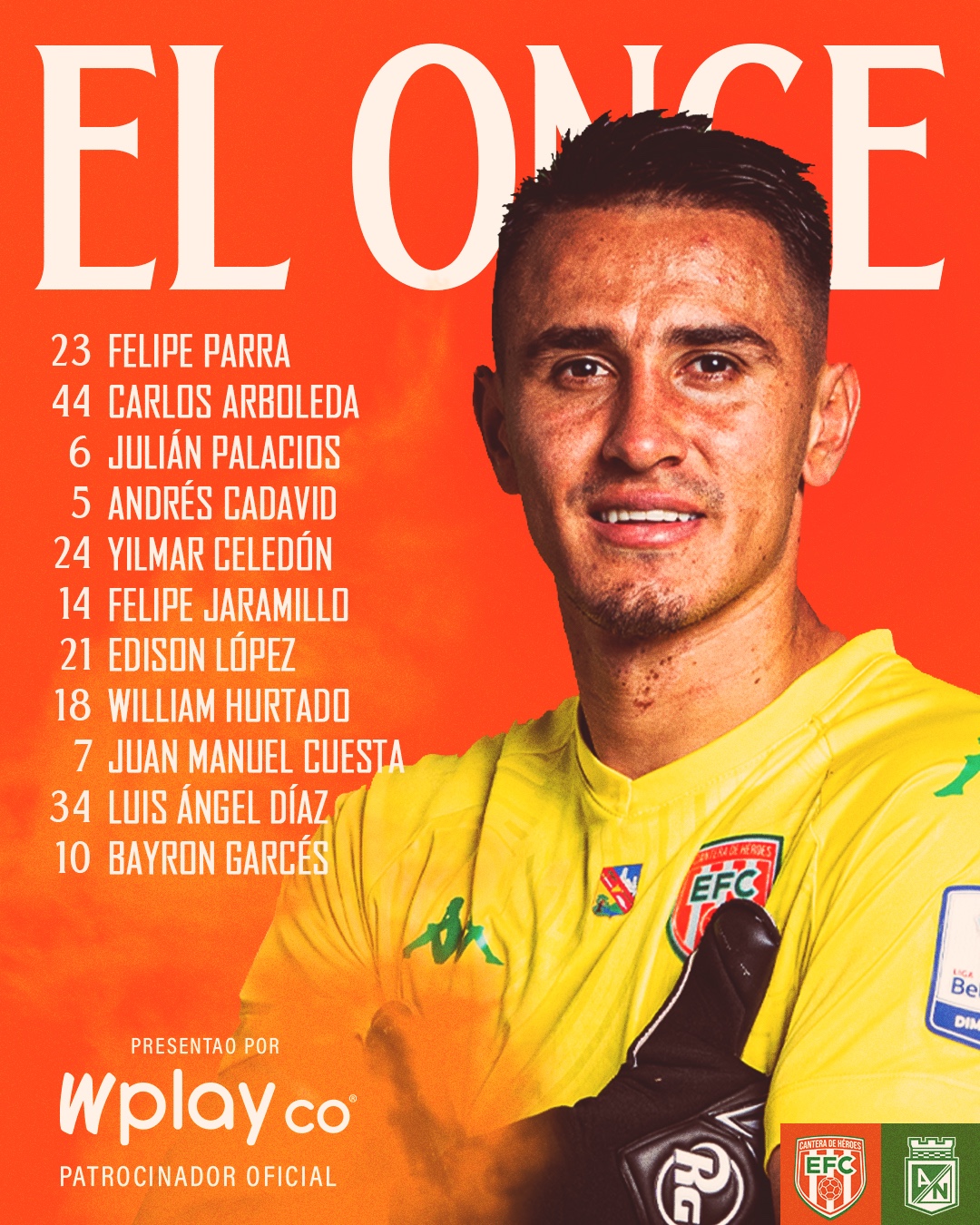 El verde paisa formará con Harlen ‘Chipi chipi’ Castillo, Joan Castro, Juan José Arias, Felipe Aguirre y Álvaro Angulo.