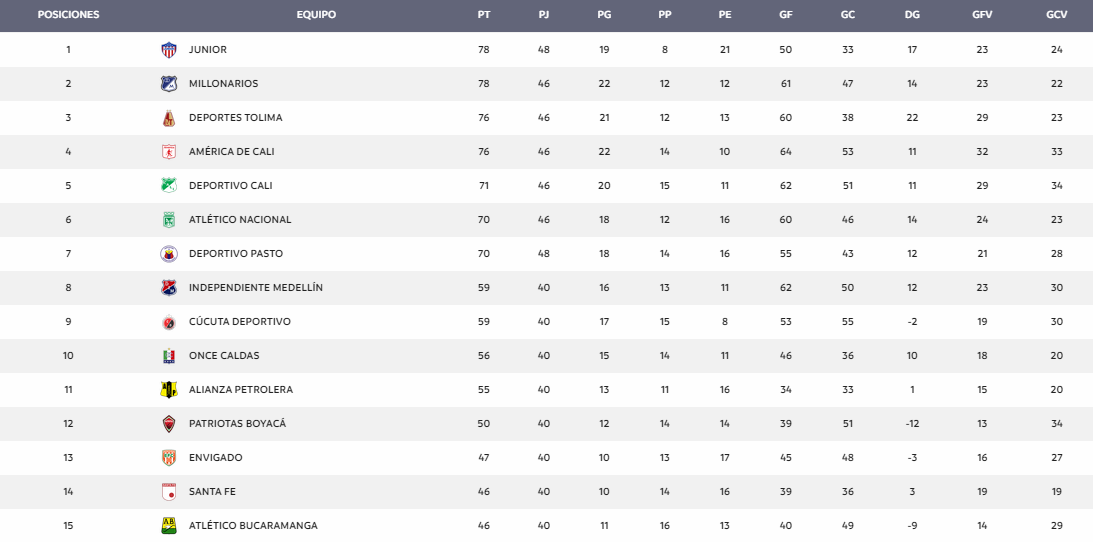 De esta manera actualmente Junior es el líder de la tabla de la reclasificación, sin embargo este ya tiene su cupo asegurado a la Libertadores por ser el campeón del primer semestre y en segundo lugar se encuentra Millonarios, que seguramente perderá su posición debido a que culminó por fuera de los 8, a diferencia del Tolima, el América y el Cali.