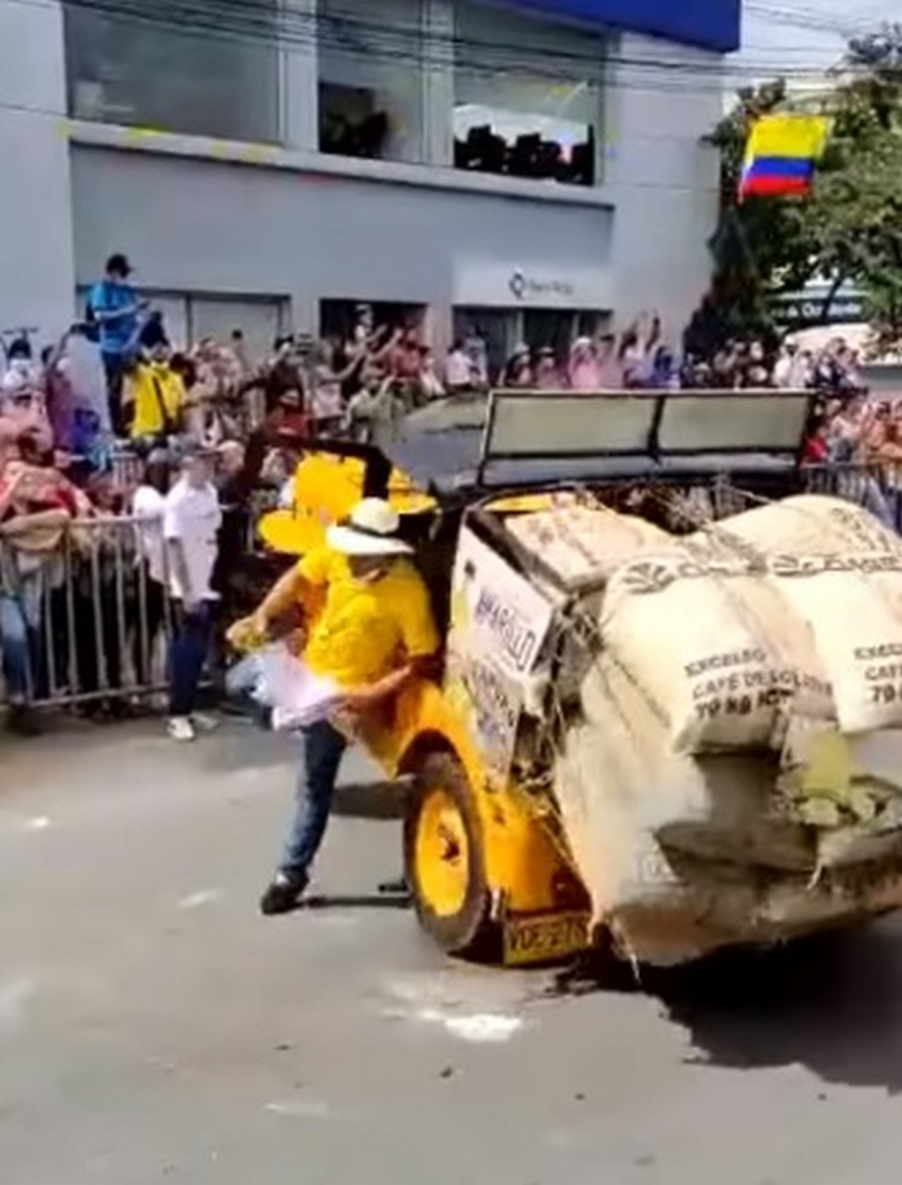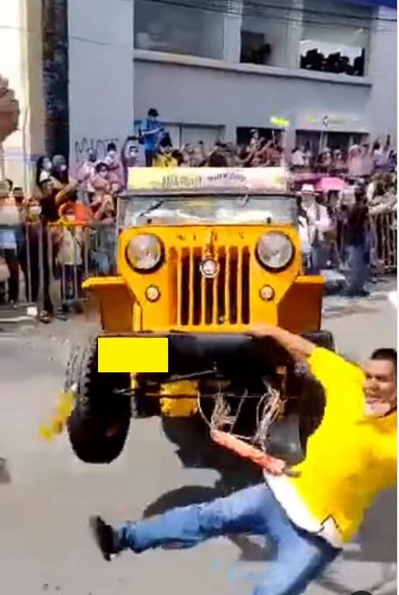 Es el caso del video difundido en redes sociales se observa durante una exhibición pública durante las fiestas de Armenia. El hombre se bajó del carro y mientras el ‘Jeep’ daba vueltas alcanzó atropellarlo.