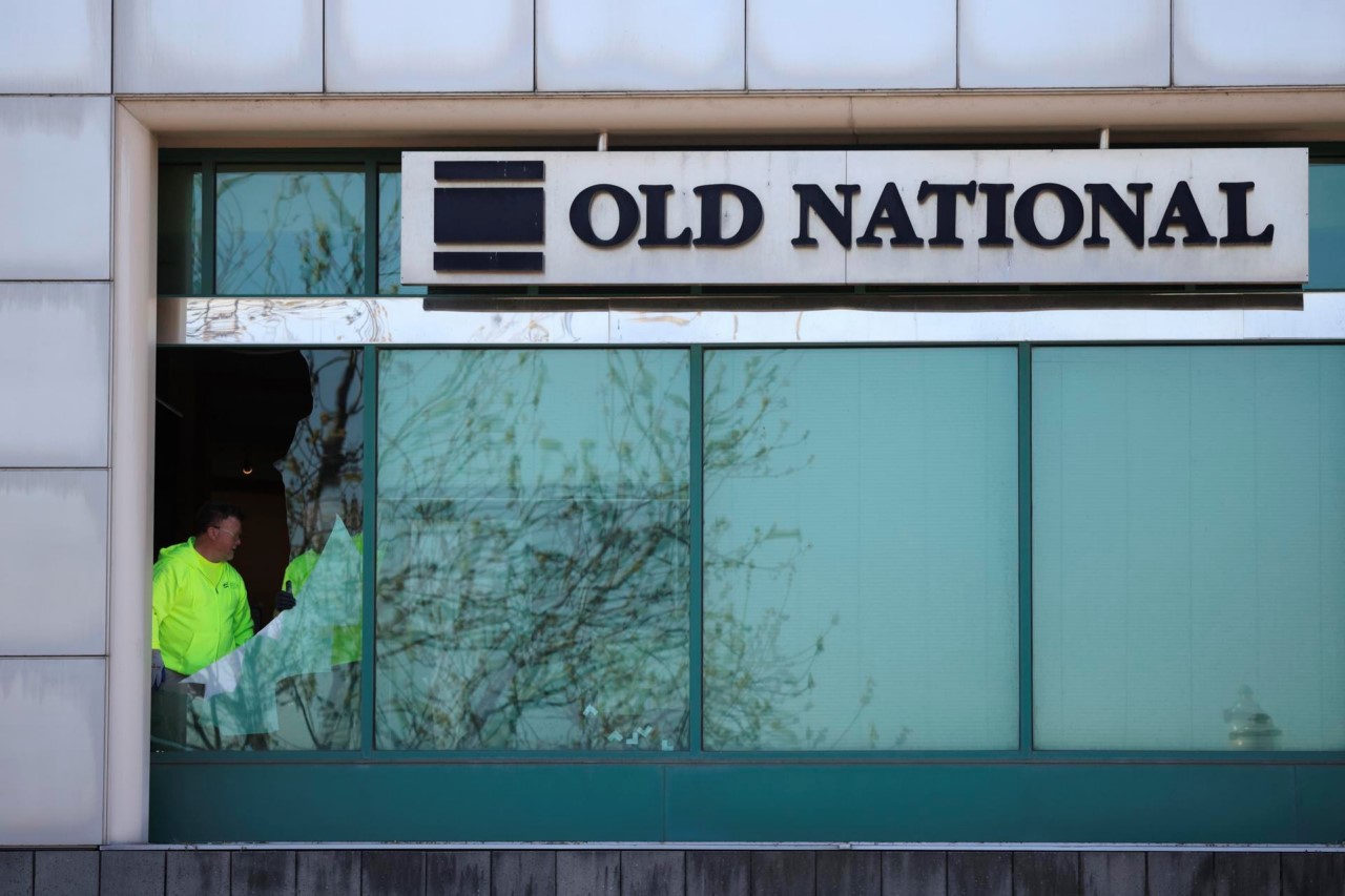 Vista del Old National Bank, en el centro de Louisville, Kentucky (EE.UU.), este 11 de abril, donde ayer un hombre desató un tiroteo que mató a cinco personas. EFE/Luke Sharrett