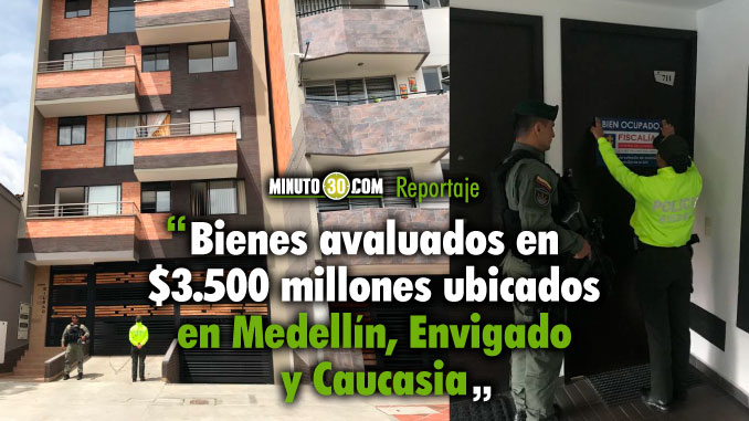 Dentro de los bienes se encuentran 15 inmuebles en Medellín y 2 en Caucasia, entre ellos algunos lujosos, un establecimiento comercial y un vehículo en Medellín, además 2 vehículos más en Envigado e Itagüí, a los cuales se les aplicó las medidas cautelares de embargo secuestro y suspensión del poder dispositivo en aplicación a la Ley 1708 de 2014.