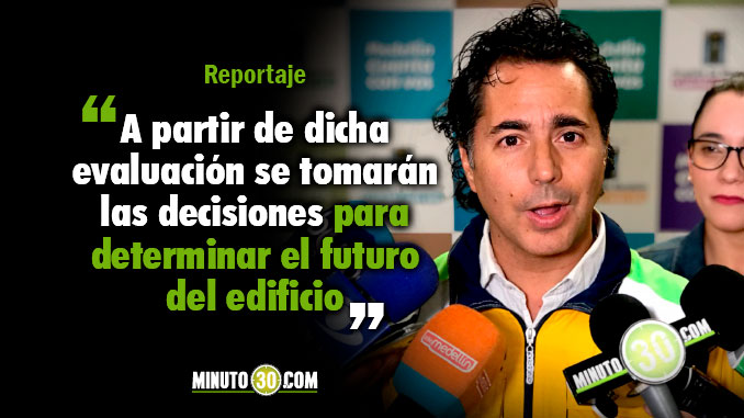 El director del DAGRD, Camilo Zapata Wills, luego de una sesión extraordinaria del Consejo Municipal de Gestión del Riesgo de Desastres presidida por el Alcalde de Medellín, Federico Gutiérrez, anunció la decisión de declarar la Calamidad Pública ante la posibilidad de colapso del edificio Bernavento, ubicado en la Loma de los Bernal.