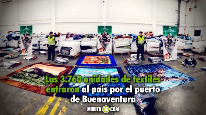 En el sector conocido como Puente Tierra en el departamento del Valle, se efectuó en las últimas horas un operativo por la Policía Fiscal y Aduanera de Cali en coordinación con la Seccional de Impuestos y Aduanas Nacionales (DIAN), el cual dejó como resultado la incautación de 3.760 unidades de textiles de contrabando traídos de China, los cuales eran transportados en un contenedor que entró al país por el Puerto de Buenaventura.